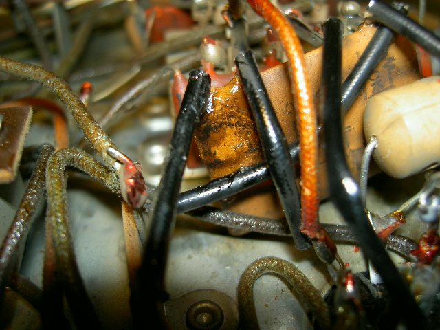 Kuvassa näkyy pari hieman erikoisempaa komponenttia, muinaisia "mikropiirejä" ne litteät ruskeat. Vastaavat nykyisiä vastusverkko komponentteja.