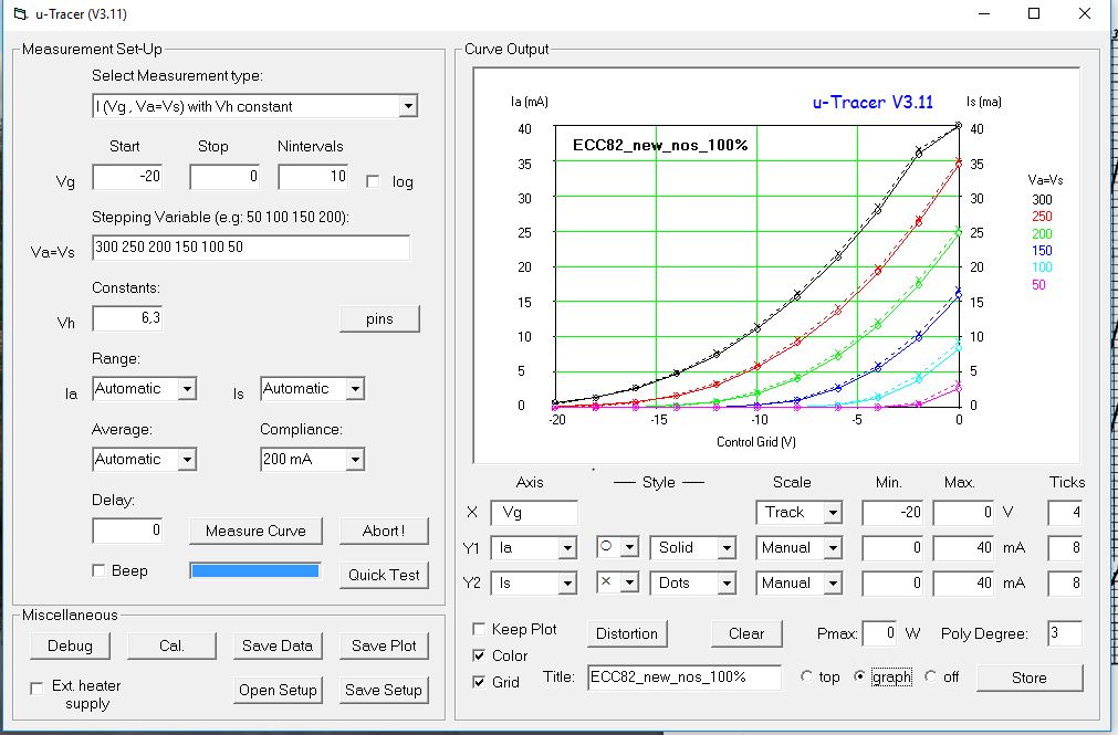 Anodi ja Screen jännitteille omat käyrät kuvan mukaisesti ja asteikot kannattaa laittaa manuaalisesti mahdollisimman samannäköisiksi datasheet käppyröitten kanssa niin on vähemmän päänvaivaa ja laittaa jännitteitten maks.arvot myös datasheetin mukaan.