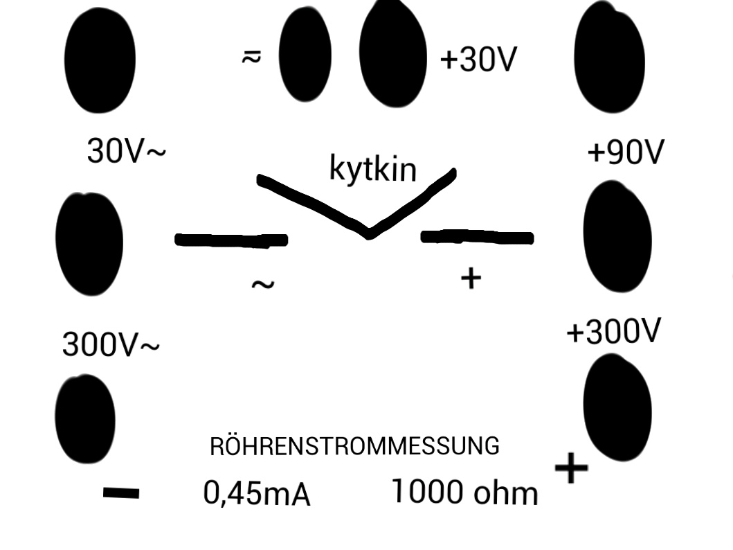 Kyllä se on ihan jännitemittari (AC ja DC). Alueet näkisi ehkä paremmin vielä kun otat päältä kuvan. Taitaa siellä "AC alueella" pilkistää 100 volttia ?. Lisäksi on navat virtamittaukselle, mitä ilmeisimmin jonkin tietyn laitteen "putken" toimintalueen mittauksiin.