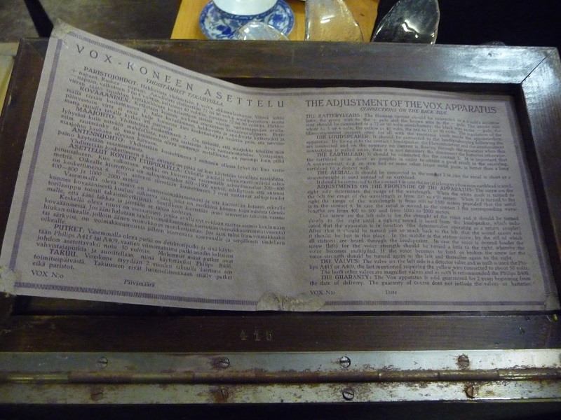 Käyttöohjeen kuvaa katsoessani tiesin, että olen nähnyt tämän paperin jossakin. Olen kuvannut paperin Turun Yliopiston kirjaston pienpainatekokoelmassa v. 2008. Teksti on painettu paperin molemmille puolille. Villen välittämässä kuvassa näkymättömällä puolella on yleisiä tietoja kyseisestä Vox-radiosta. Kuva siitä on alla tilasyistä harmaasävykuvana.