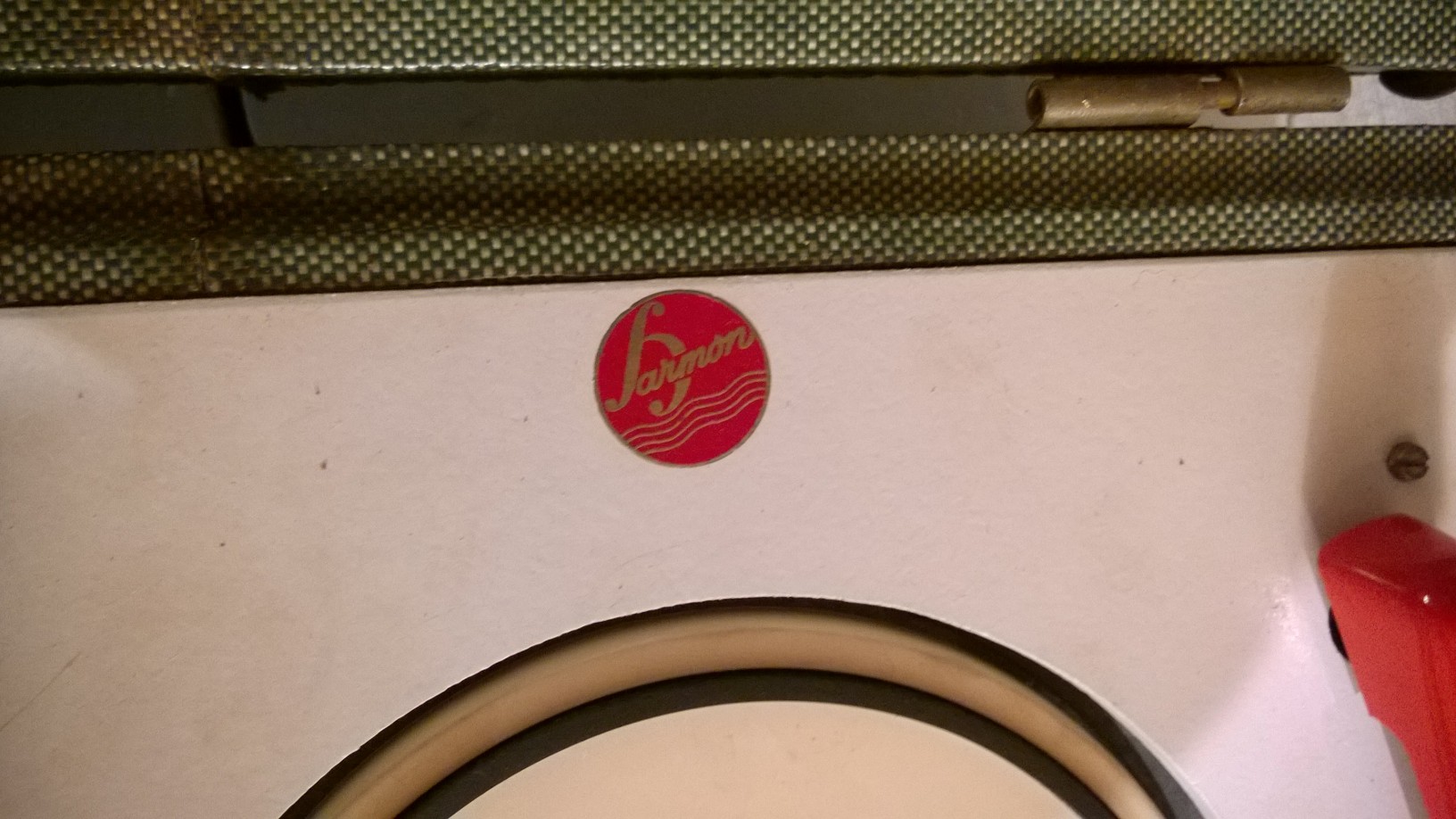 Tuollaisesta kaivattaisiin lisätietoja. Niinkuin kuvasta varmaan ilmenee, on laite aikalailla "lelumainen". On kuitenkin paristo/verkkokäyttöinen omalla kaiuttimella ja vahvistimella. Vahvistinosa lienee D-sarjan putkilla. Valmistusajankohta lienee joskus 60-luvun puolivälissä? Olisko Harmon tehdas hankkinut valmiin pyörityskoneiston jostain ja koonnut loput itse?