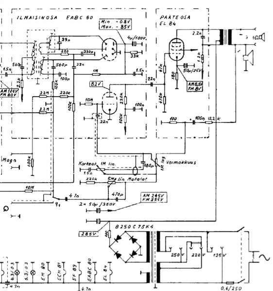 Pääteputken hilakondensaattorin ja katodielkon olen vaihtanut. Myöskään EABC80 ja EL84 putkien vaihdosta ei ole apua.