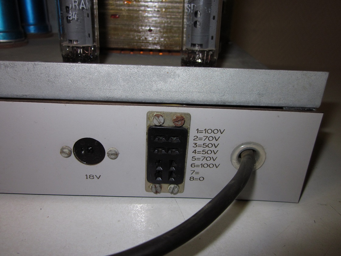 Mahtaisiko tuossa kysyjän vahvistimessa tuo 18V liityntä olla ihan matalaohmiselle kaiuttimelle, mikäli tuo 18v (n. +23dBu) tarkoittaa "Loudspeaker Level" tasoa. Liitinkin on DIN - kaiutinliitin näköjään.