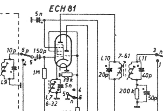 Yritän siis aikani kuluksi kasata asaa kasaan, ja nyt on yksi kummastusta herättänyt vika tahi puute. Eli siitä oli yksi kela pudonnut pois, oli johdot katkenneet, johdot olivat ech81 katodilla eli ech81:n piikki nro 3 ja toinen maihin. Nyt kun olen yrittänyt muiden vastaavien, eli viisi putkisten ja samoilla putkilla rakennettujen vastaanottimien kytkentäkaavoista "lukea" ohjeita, niin kaikissa on katodi kytketty suoraan maihin, mikä tuon kelan perimmäinen tarkoitus on. Tosin kyseessä voi ja saattaa olla perusteellinen omakin moka.