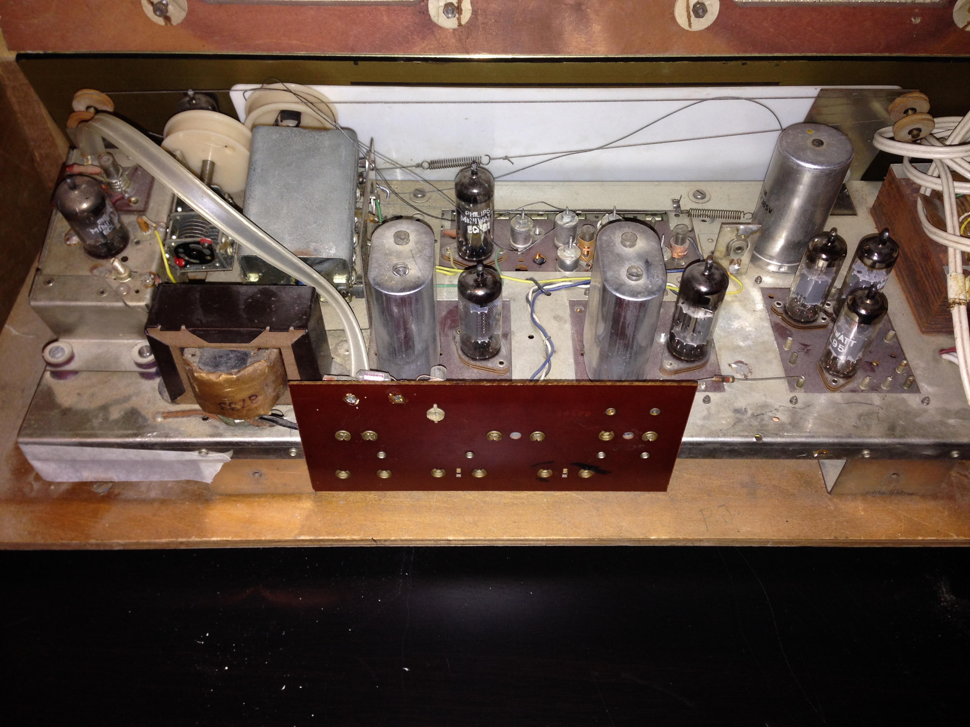 Mistähän tuota alkaisi ratkomaan? Päätteen yhteydessä on 3kpl EL95 putkia, joiden kunto on arvoitus. Noiden keskinäisiä paikkoja vaihtamalla oli hieman vaikutusta saatavaan voimakkuuteen käynnistysvaiheessa. Melko mykäksi se lopulta vetää. Minulla ei ole tähän hätään uusia/varmuudella ehjiä putkia millä kokeilla. Pitäisikö niistä aloittaa, vai onkohan riski rikkoa uudetkin.
