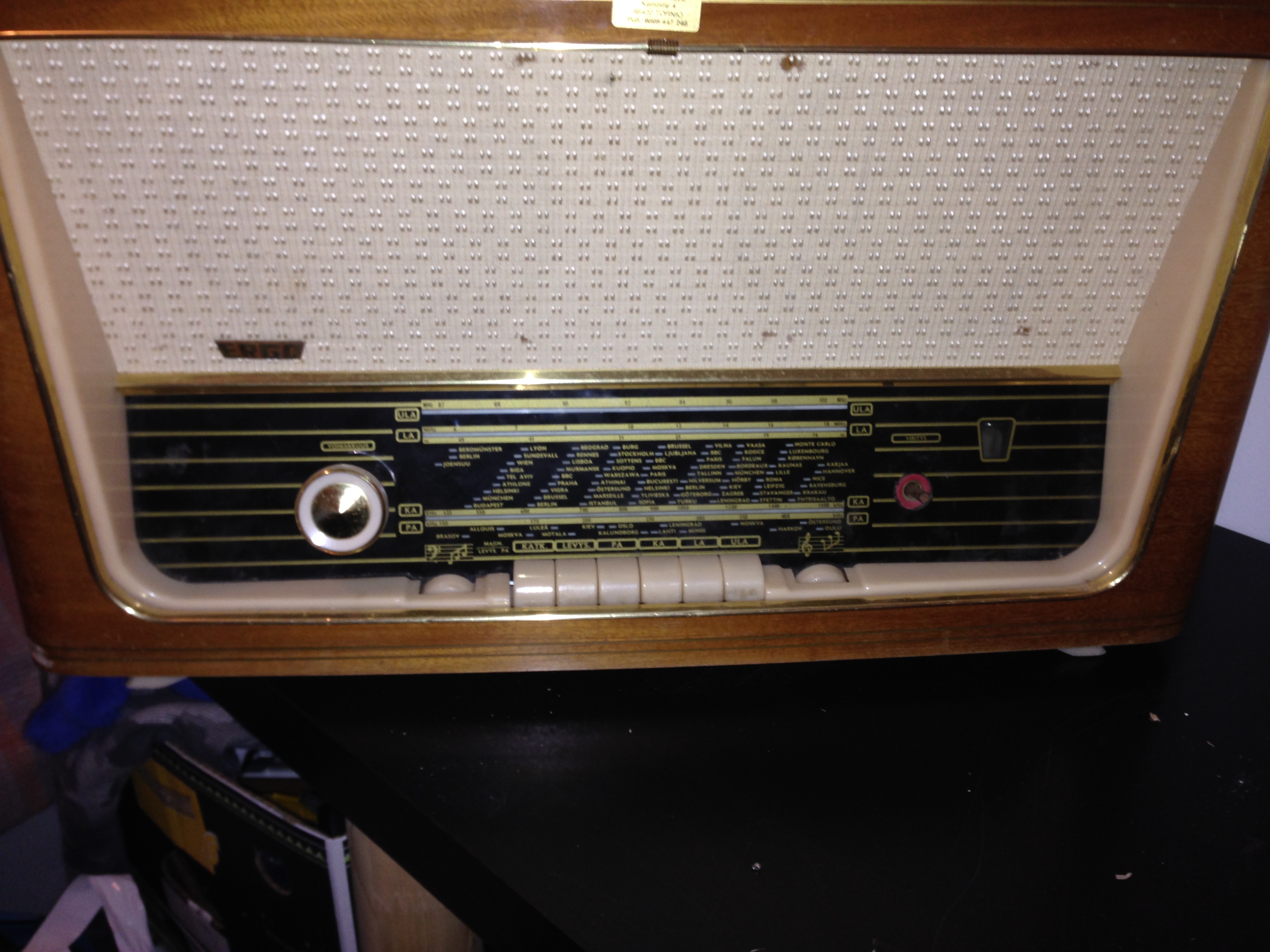 Minulla on tuossa odotellut kunnostusta alla olevan kuvan Ergo radio. Minulla on siitä varsin vähän tietoa, enkä oikein mittavasti löytänyt netistäkään vielä. Ilmeisesti mallinimi on Festivo (takalevy puuttuu)?