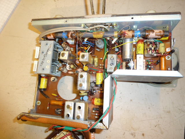 Seuraavaksi mittasin ulan ekan trankun jänniteet ja emitterillä vain 0,4V ( piti olla 6,4V). Trankku irti ja testiin ... testikytkennässä se johti UC= 0,25V riippumatta kantavirasta .. siis ihan sökö. Vaihdoin tilalle AF178 (muita ei ole). Nyt jännitteet nousivat kohdalleen. Mutta vieläkään ei toimi moitteetta .. rahisee asemaa haettasse ja asemat löytyvät vaikeasti ... jos löytyvät.