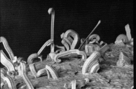 Taidat epäillä ihan oikein. OC171 on näitä viiksenkasvataja transistoreita (alla kuva transistorin sisältä). Hulluinta onkin että korjaantuu väliaikaisesti yleismittärin ohmia-alueen virralla. Tilalle sopii moni vaikkapa AF178.
