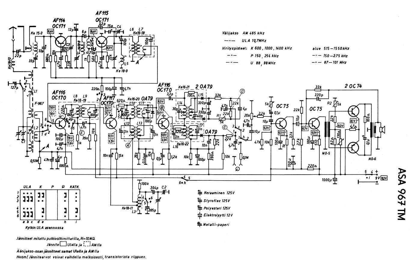 Laita postia jos kaipailet transistoreita, voin laittaa pari sopivaa kirjekuoreen. Kaavio on ADA Cd:lla joka on loppu mutta kysy toimisto(att)radiomuseo.fi osoitteesta.