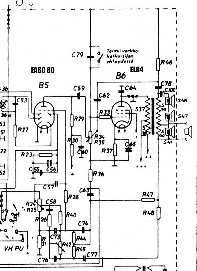 Edit: Ehkä liitteen kaavio pääteasteesta (F265V) selkeyttää hieman mistä on kyse tuossa taajuuskorjauksen rakenteessa.