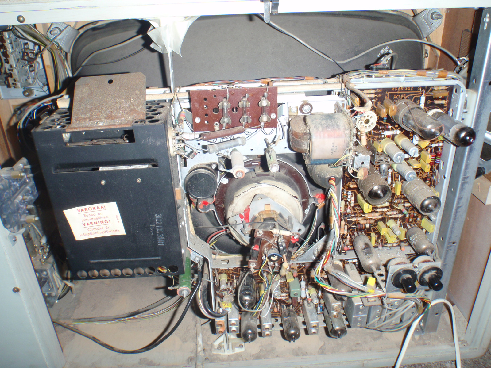 Knoppina mainittakoon, että tuossa koneistossa on muistaakseni kuvaputken kaulasta takaa katsottuna oikealla putki jota ei saa ottaa virrat päällä pois, muuten hehkupiirissä oleva rinnakkaisvastus nousee savuna ilmaan..