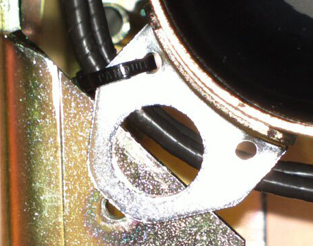 Tuossa käyttäisin kahta riittävän suurta korialuslevyä/ kulma. Koko saisi olla halkaisijaltaan noin 10 mm suurempi, kuin kuvaputken korvakkeessa oleva iso reikä. Huomioi koko siten että korialuslevyn pultin reikä sattuu tuon korvakkeen ison reijän keskelle. Nuo n. 30 mm tai 35 mm halkaisijaltaan olevat korialuslevyt ovat yleisesti paksuudeltaan 2-3 mm teräslevyä. Tämän kokoisissa korialuslevyissä keskireikä on yleisesti joko 8 mm tai 10 mm pultille.