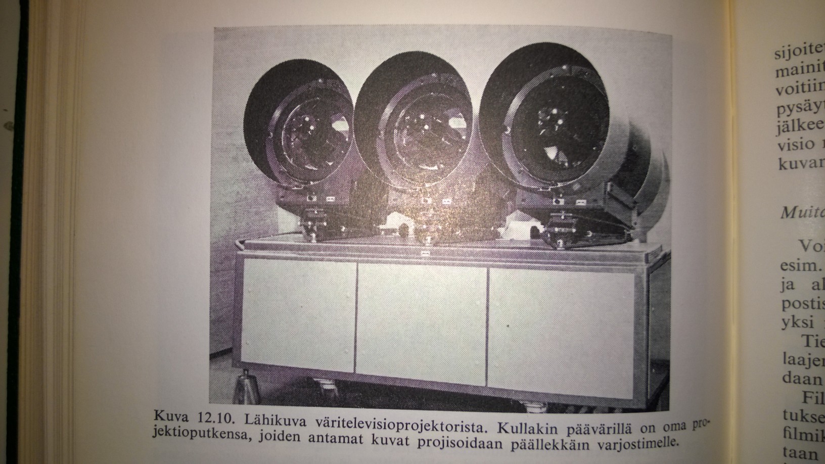 Jarl Sarvaksen teoksessa Kuuntelijan radio-opas vuodelta 1938 on kuva tv-projektorista toiminnassa.Sivu 207.