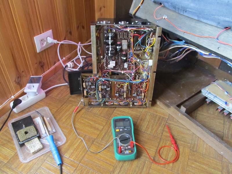 Vielä ei hurinalähde selvillä. Toisen kuvan painokytkentälevy on vain yksi monista (ainakin 6 kaikkiaan). Reguloituja jännitteitä varmaan parikymmentä vähän siellä sun täällä.