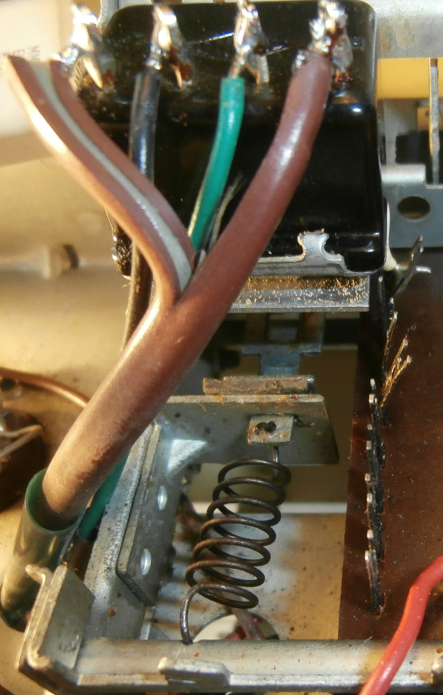 …tovi tuumattuaan… koneisto purkuun. Parikymmentä piuhaa irti ja samalla varoen ohuita kelakäämilankoja ja sieltähän se vian aiheuttaja ilmestyi, rauta syö rautaa.