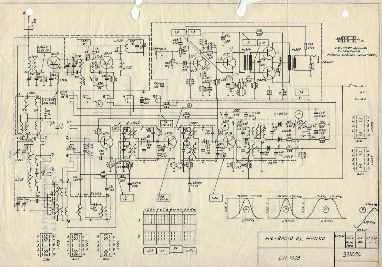 Minulla on alkuperäinen kaavio mutta ei siihen sopivaa radiota. Minkähän radion kaavio on kyseessä. Välitaajuudesta päätellen 6,75Mhz olisi 60 luvun alkua.