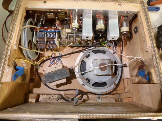 kävimpä sitten laitteen kimppuun ilman kytkistä (en muuten ole putkivehkeiden taitaja). Hehkut selvisivät ... kaikki 4putkea sarjassa ja yhteensä 6V ... virtaa ottaa 60ma) Anodijännitteenä käytin 72V. Laite alkoi suhista, ja jotain pientä signaalia se ottikin (häiriöitä) , mutta mitään asemia ei löytynyt. Kovin on epäherkkä. Koskettamalla pääteputken DL94 yhtä nastaa alkoi kuulua tyypillistä 50Hz hurinaa ... päätevahvari lienee siis ok. Mittasin kaikkien putkien jänniteet. Järjestys alkaen antennista: DK92, DF91, DAF91, DL94. Ohessa kuva, jossa jännitteet.