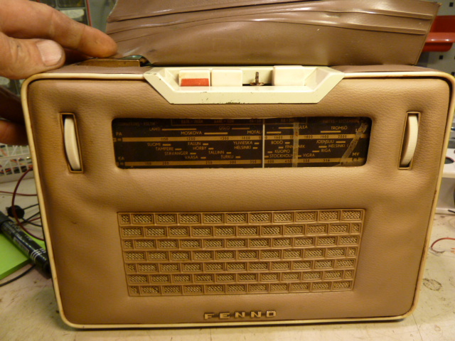 Historiaa. Tämä tuli eteen ostaessani netistä nipussa 30 radiota. Laite toimii yllättävän hyvin. Keskipitkillä löytyy pelkällä ferriittiantennilla selkeästi kymmenisien kanavaa. Potikka hiukan rahisi, mutta sekin parani sprayllä. Täytyy kunnioittaa tämän laitteen kestävyyttä ... yli 50 vuotta? Kotelon muovisuojat ovat hiukan repeilleet ja yksi nappula puuttuu .. saiskohan tuollaisen nappulan jostakin? Onko tämä harvinainen?