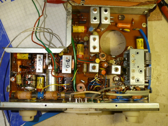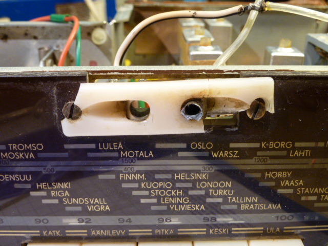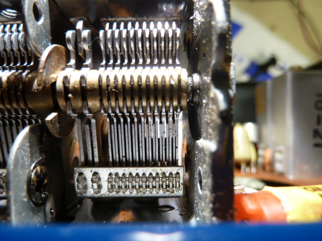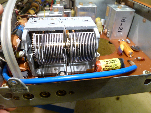 Kytkin jännitteen laitteeseen ja ... ULA lauloi heti. Harmi ... Eihän tästä tule mitään ajankulua;) Kokeilin Keskipitkiä ja sieltäkin kuului selkeästi .. aluksi. Mutta kiertäessäni säätökonkan sisään sekosi vastaanotin, rahisi ja vinkui. Heti näkyi, että ulommat kiertyvät kielet olivat taittuneet. Oikaisin niitä ja se auttoi hiukan. Seuraavaksi huomasin, että levyjen välissä näytti olevan likaa. Ruiskutin konkkaan elektroniikan puhdistusainetta ja puhalsin paineilmalla huolella. Taas parani,mutta ei vieläkään täydellinen. Tarkaan katsoessa näytti, että että kieryvät levyt eivät olleet ihan keskellä paikallaan pysyvien levyjen suhteen. Säätökonkan päässä on säätöruuvi, jota löysäämällä kiertyvä pakka keskittyi oikeaan paikkaan (tuurilla?) .. ja samalla loppui keskipitkillä (ja pitkillä) rähinät. AM alueetkin toimii. Siinä se ... hieno radio. On mekaanisesti harvinaisen selkeä ja helppo laite.