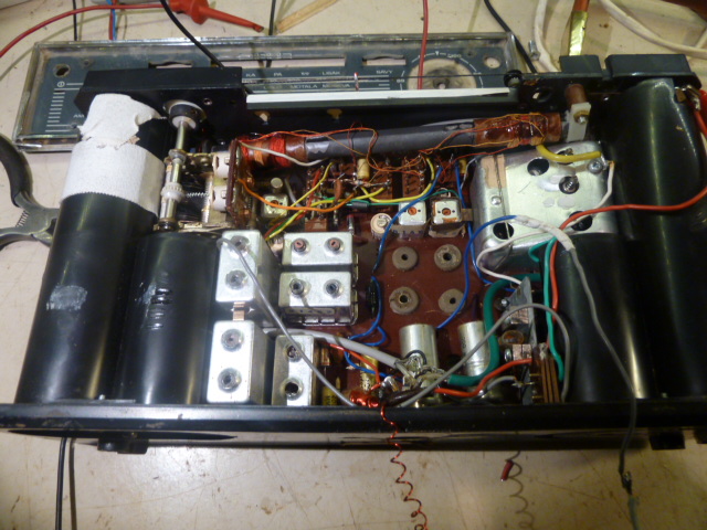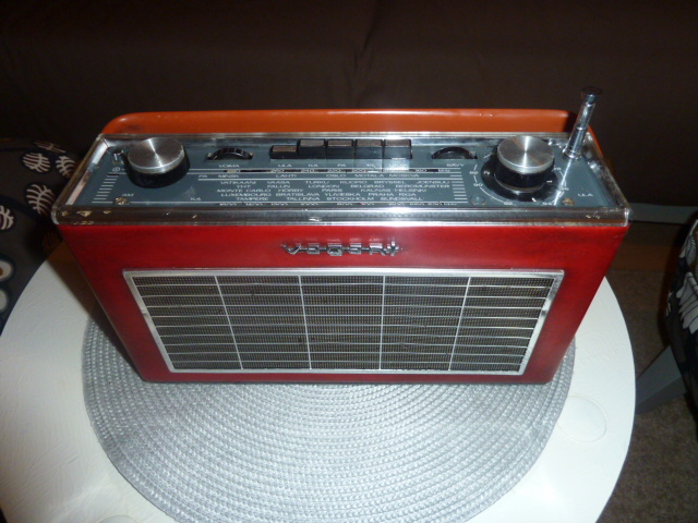 Otin Helvar Ulamatikista koteloon osia , antennin ja kajarin...ja myös yhden ruuvin naamatauluun (ovat sellaisia, joissa on 6 halkemamaa). Nyt radio on oikeastaan aika lailla alkuperäinen. Ne 4 vaihdettua elkoa ovat erilaisia.
