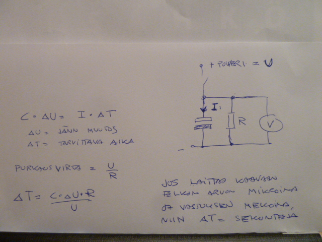 Laskemalla : 500uf konkan jänniteen pitäisi vajota 1V  5 sekuntissa.