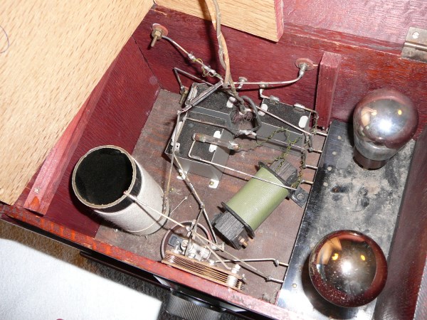 Kyllä tuo hyvin vahvasti näyttää 2-putkiselta vastaanottimelta. Mahdollisesti omatekoinen, tehty jonkun 1920-luvun lopun tai 1930-luvun alun radiolehden rakenteluohjeen mukaan?