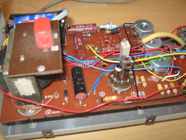 Kaksoisdiodin paikalla oli puolijohdediodit ja ECC82:n paikalla pistokkeessa kaksi fettiä, BF245. Hehkuja ei ole kytketty kantaan lainkaan eikä kaksoisdiodin kantaa ollenkaan piirilevyllä.