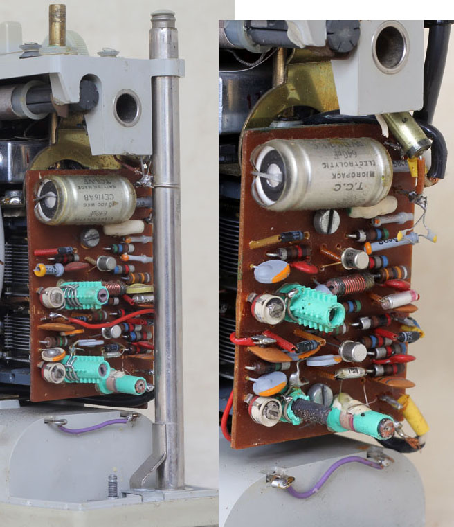 Vasemmalla on kuva ula-esiasteista sellaisena, kuin radio on lähtenyt tehtaalta. Oikealla on kuva muunnellusta radiosta. Vihreillä rungoilla olevien kelojen kierroksia on poistettu.