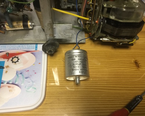 Kunnostin itse jokin aika sitten Meersburg 100 radion ja laitoin tuon 0,35uF  konkan tilalle pari 0,15uF pulssinkestävää rinnan ja haku toimii todella hyvin. Näyttää siltä, ettei tuon konkan arvo aivan juuri sama tarvitse olla, kun alkuperäisen. Vaikuttaako arvo hakunopeuteen, sitä on vaikea sanoa, kun ei ole vertailukohtaa.