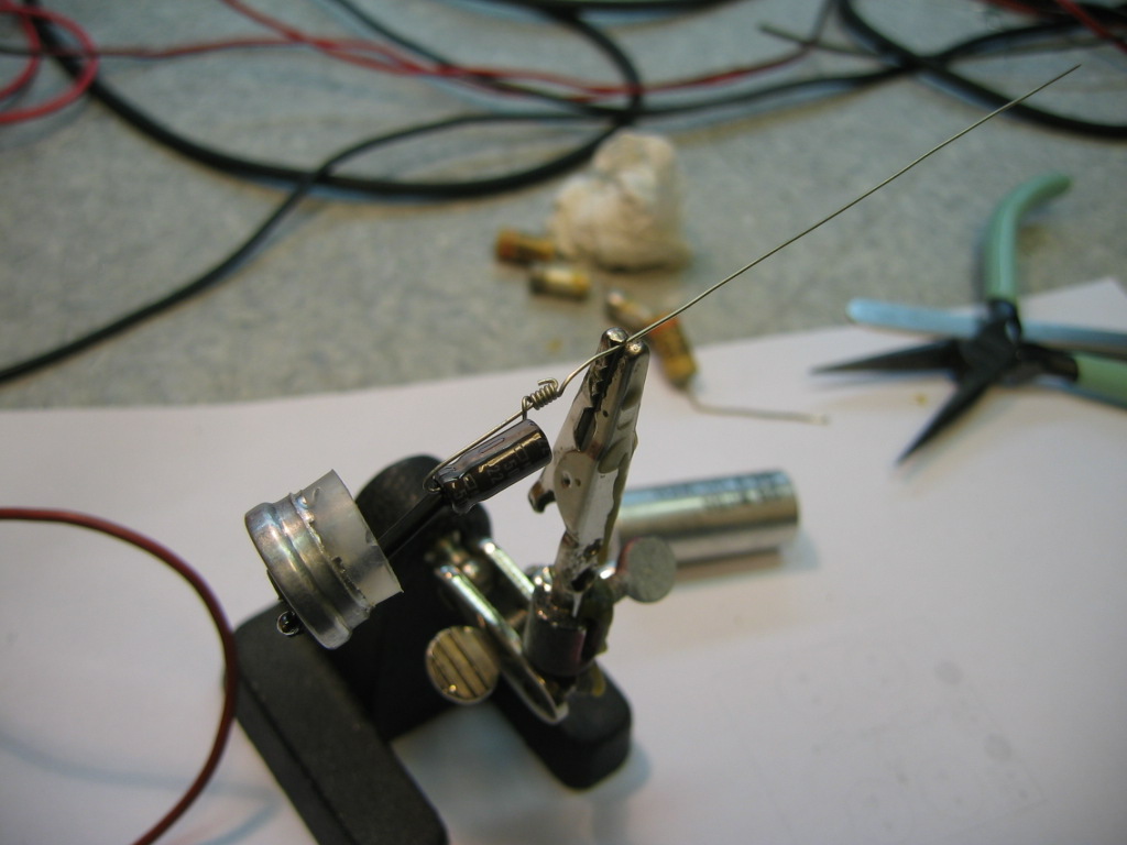 Vahapötköihin oli vähän haastetta löytää kotivarastosta 0.1uF 100V konkat mitkä mahtuvat pahviputkiin. Sitten vaan johdot kiinni ja vahat päälle.