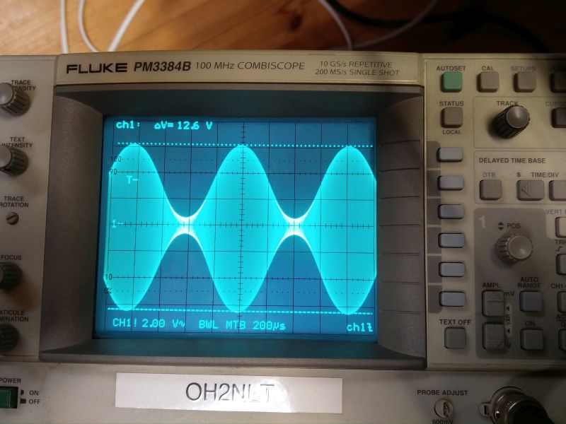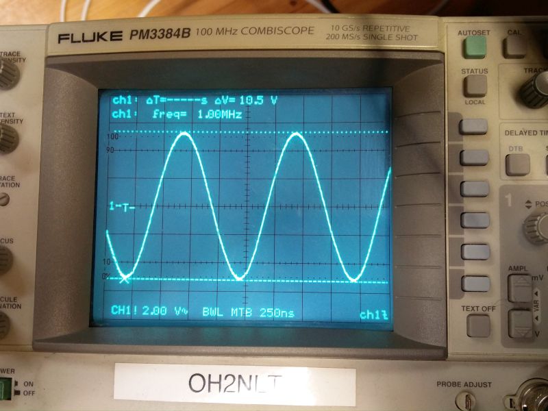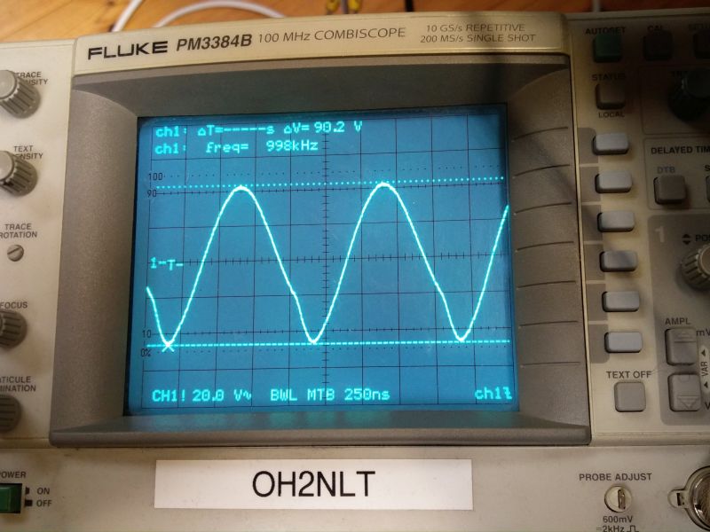 Tankkipiiri virittyi hyvin laskelmien mukaisesti. Kuormittamattomana hurja amplitudi noin 10Vpp. 50R kuormaan noin 3Vpp eli parikymmentm mW.