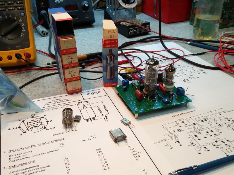 Pitää vielä hommata verkkomuuntaja, rakentaa poweri ja keksiä joku kotelo laitteelle. Jonkun tulevan putkiradioprojektin kylkeen hieno peli.