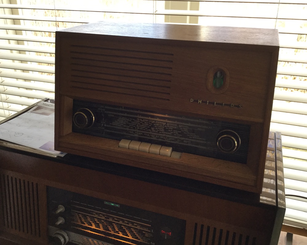 Tuon ajan radioiden herkkyys ei ole nykyisten veroinen, voisi sanoa onneksi. Jos olisi, eivät ne enää pärjäisi asemien paljouden kaaoksessa, valintatarkkuus ei riittäisi. Silloin kun nämä radiot tehtiin, saatiin kuuluviin yksi asema, myöhemmin kaksi. Ja ulkoantenni käsitettiin vakioksi, ainakin vähäkin kauempana lähetysasemasta. Ei omassakaan makuuhuoneen Philips B5SF62a:ssa näköviritysputken viuhkat mene lähellekään kiinni vaikka 1 kW:n lähetinmasto näkyisi ikkunasta jos puut ei olisi tiellä, matkaa on 4 km. Asemia löytyy ne mitkä tuo masto lähettää, tämä siis radion omalla dipoliantennilla. Ja ainakin omasta mielestä radio on kunnossa, putket on testattu ja viritykset tarkistettu.