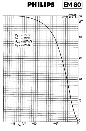 Liitteenä on EM80 viuhkan suuruus g1 jännitteen muuttuessa. Huom. Anodijännite on kuvassa 250V!