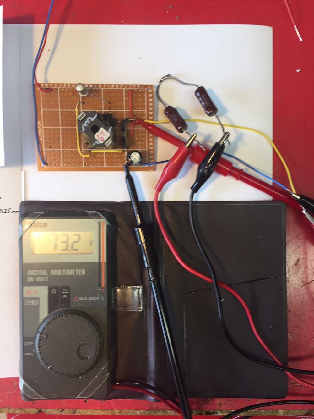 Transistori: Germanium PNP 1W / 1A esim AC188, AC153, AC142, AC128 ym. Yleensä ei tarvita lisäjäähdytystä. Kuvassa tasasuuntauksessa 2 diodia, 1 kpl 1N4007 riittää.