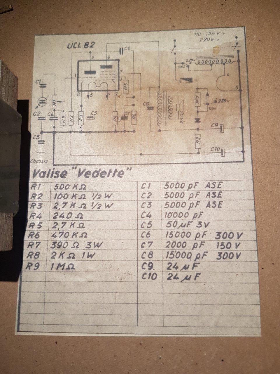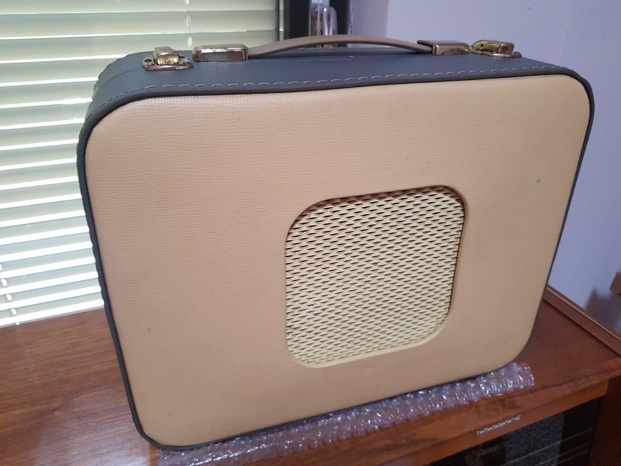 Tuommoisen harvinaisuuden bongasin kirppikseltä. Kovaääninen kannessa ja yhdellä UCL82 putkella toteutettu vahvistin. Anodijännitteen alennusvastus ja polkot uusiksi ja johan lähti toimimaan. Moottori vaatii vielä puhdistusta kun oikean nopeuden saavuttaminen kestää pari minuuttia