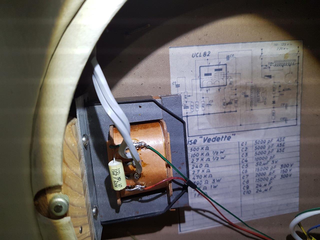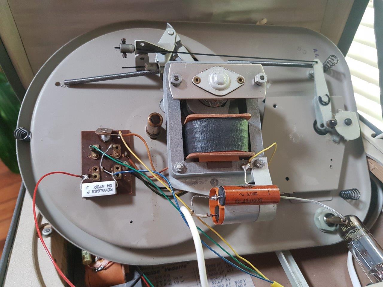 Moottorin käämi toimii säästömuuntajana ja sen käämin väliulosotosta on otettu hehkujännite UCL82:lle.