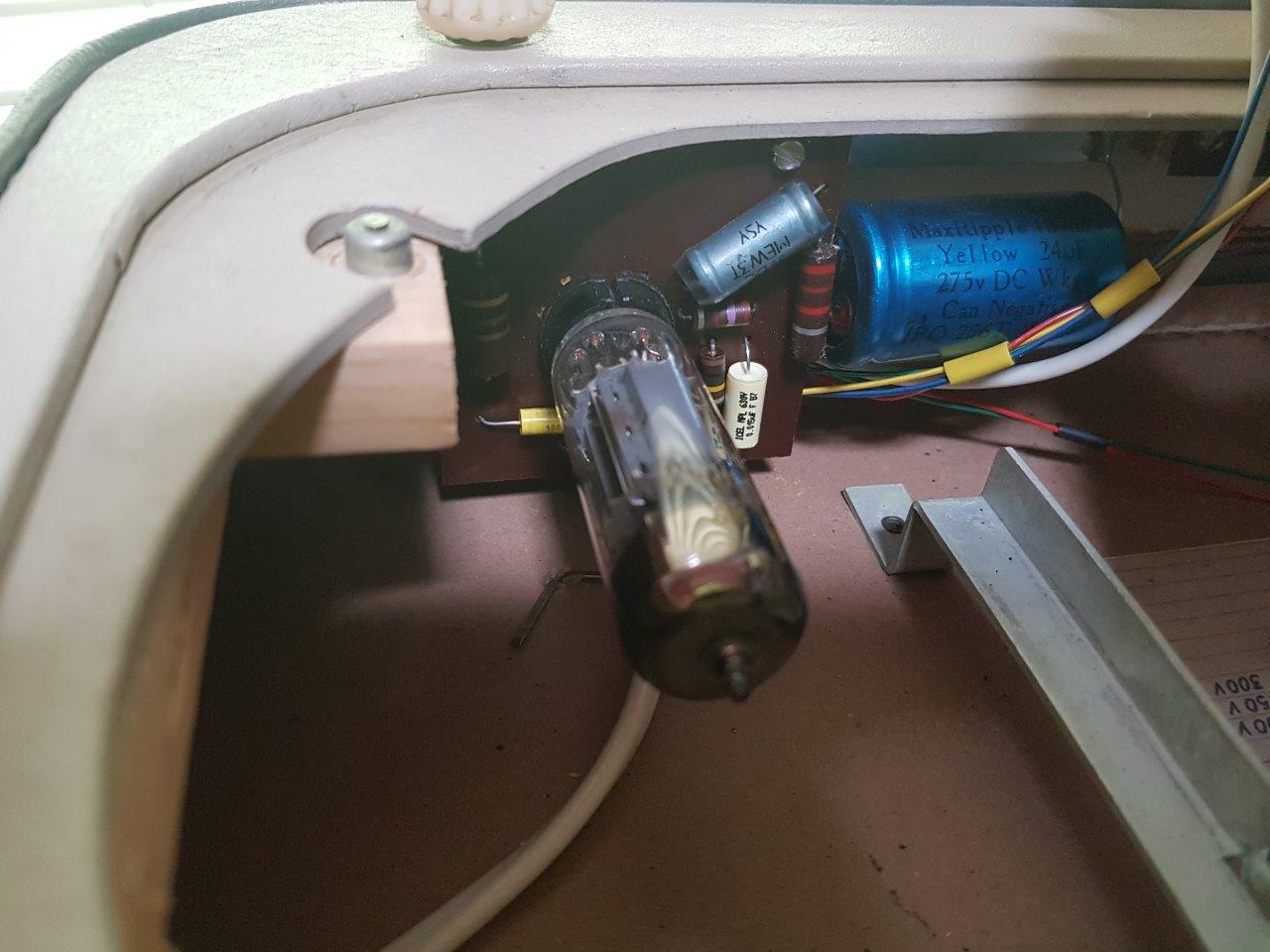 Kiitokset vihjeestä, vaihdan elkon lähiaikoina. R7 on nyt 470 ohmia kun 390 oli loppu Ural Tonessa. Anodijännite oli n.190V, mikä lienee sopiva? 110V jännitteestä sellaista ei edes saisi aikaiseksi.
