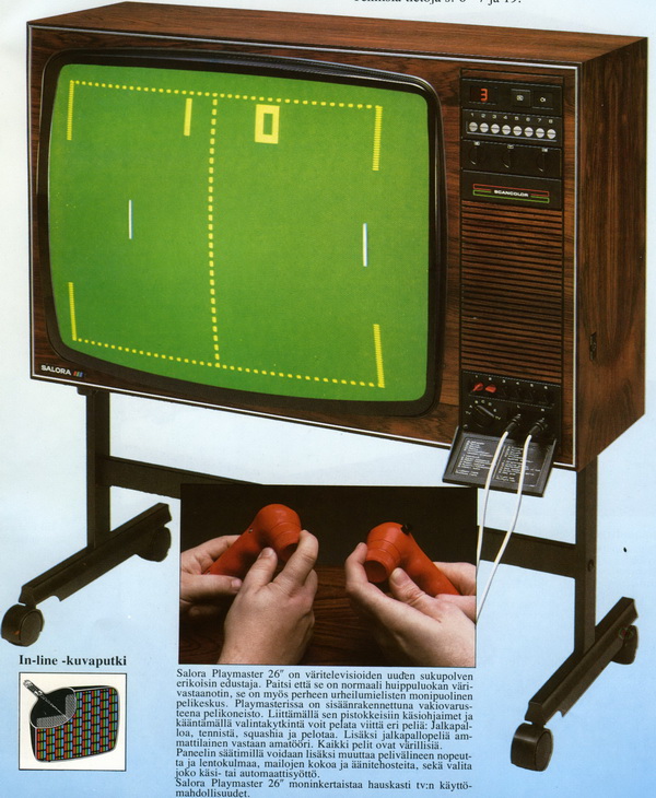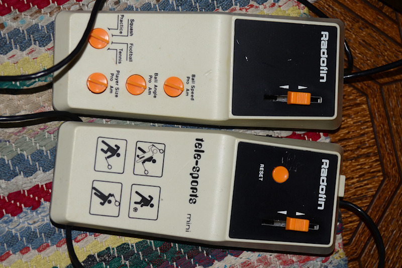 Hupaisa eilinen kirpputorilöytö, Radofin (EDIT: nimi korjattu, alkuperäisviestissä Radotin) tele-sports Mini. 50 senttiä maksoi, oli vähän putsattava paristotilaa (löytyy toki myös 9v miniplugi(?)syöttö) ja laitettava katkaistuun kaapeliin antenniliitin, että pääsi testaamaan. Tuntuisi toimivan, tosin liukupotikan tuntuma aikoinaan käyttämiini pyöritettäviin peliohjaimiin verrattuna heikompi. Aika nostalginen fiilis kyllä, 70-luvulla vierailu serkun luokse oli kovassa kurssissa juurikin vastaavan läsnäolon tähden.