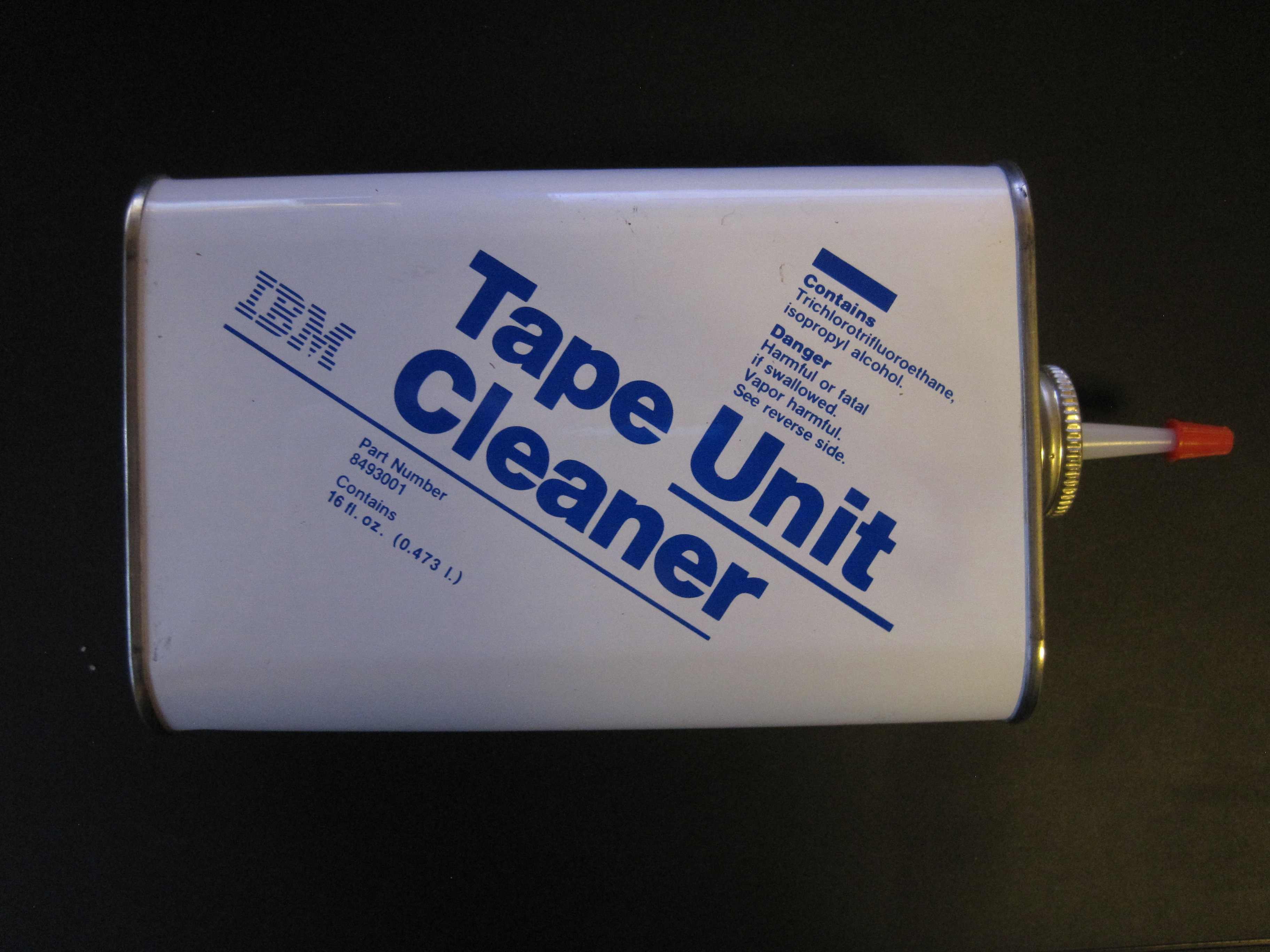 Laitan vielä liitteeksi kuvan IBM:n nauha-yksiköiden puhdistusainepullosta, joka on ollut minulla muutaman kymmenen vuotta. Nyt se tosin alkaa olla tyhjä. Sisältää mm. isopropanolia.