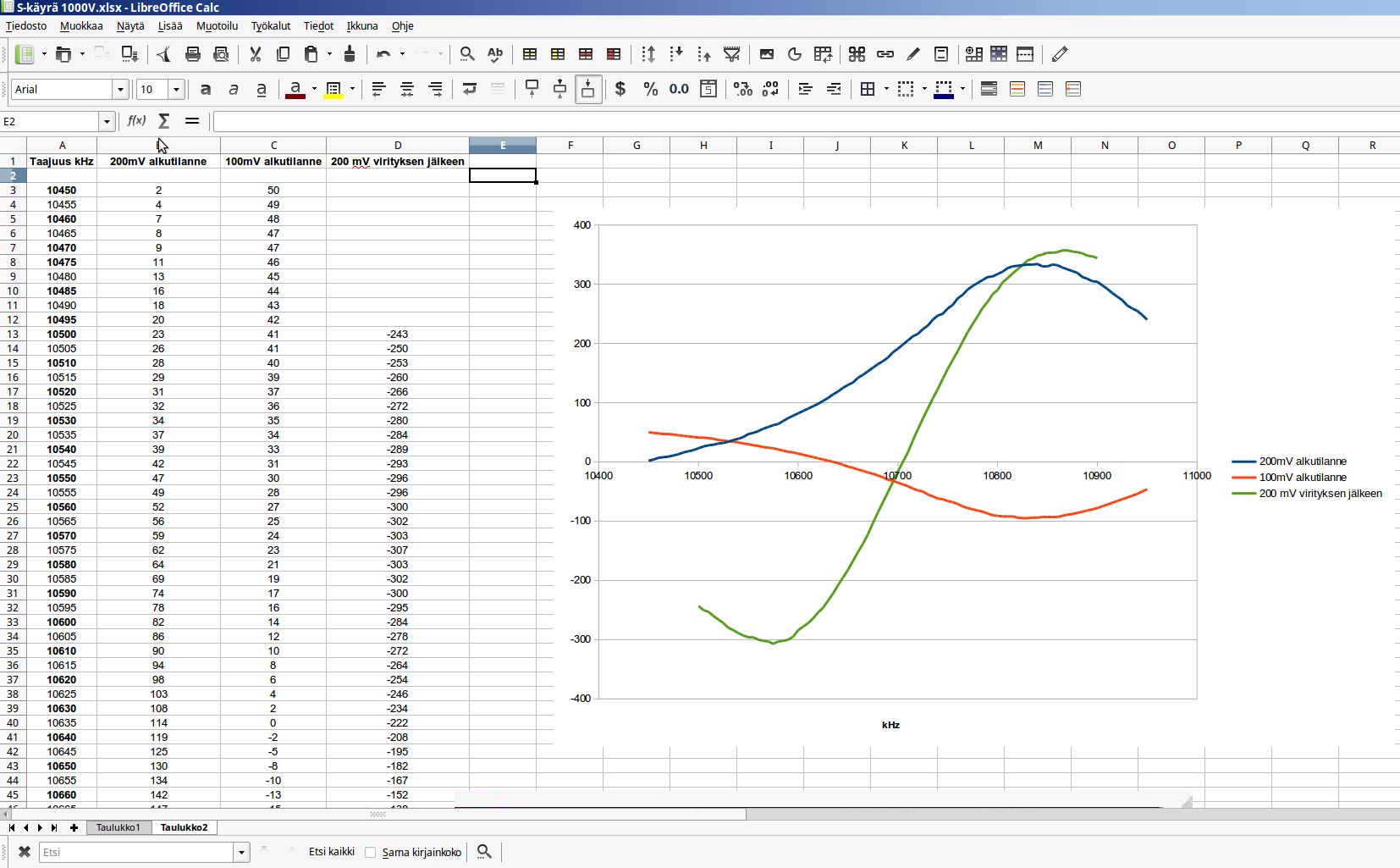 Paremman mittalaitteiston puutteessa yritin saada selville Salora 1000V:n s-käyrän muotoa seuraavalla järjestelyllä: