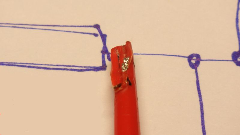 Jo vain kävikin. Aluksi oli vain 1k5 2W vastus (ei ollut juuri sitä 1k8 kuin ¼W tehoisena) ja 200V 5W zener. Mittakoukku kuvan paikassa eli ihan vastuksen päässä. Lopputulos näkyykin kuvasta. Zenerin lämpötilaa en ehtinyt kokeilla...