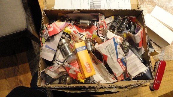 Voisikohan joku hiukan valaista oikeaa pakkaustekniikkaa. Tässä paketissa putket olivat lasi vasten lasia ... rekvisiittana oli hiukan paperisilppua siellä täällä. Tuloksena 2 putkea palasina ja 2 harmaita (ilmaa sisällä).