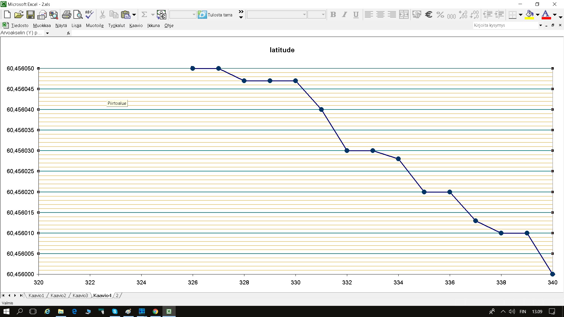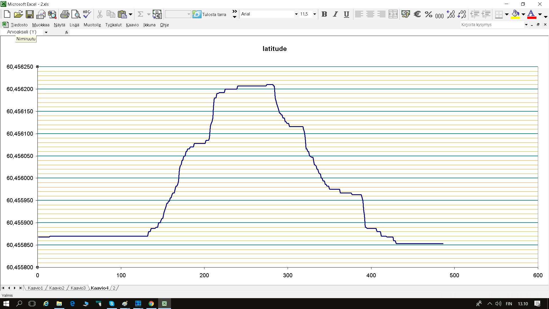 Panin dronen lokitietoja exeliin. Voisikohan näistä vetää jotain johtopäätöksiä. Pienin hyppäys näissä luvuissa on 2 pykälää kuudennessa desimaalissa. Mitään jitteriä ei näy.