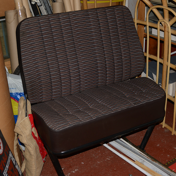 Lisäyksenä vielä, että yläpinnassa on niskatukien reiät. Ja oma arvaus on, että ehkä jostain 80-luvun alusta.