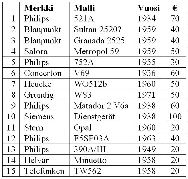 Eiköhän kärttyisillä ukoillakin ole oikeutus tuoda jotain realismia ja käytännön kokemusta hintapyyntöihin, ja toteutuneisiin kauppahintoihin, jotka varsinkin huutokauppasaiteilla ja Euroopan areenoilla ovat aivan jotain muuta mitä käytännössä on kotimaassa mahdollista toteutua. Oma käsitykseni on se, että nykyään putkiradioiden järkevä hintataso on 20...60 Euroa, kovasti riippuen kunnosta ja mallista. Nykyään tarjonta on suurempaa kuin kysyntä, johtuen harrastajien ikäjakaumasta. Sisustus- ja antiikkifriikit ovat asia erikseen, siellä ei tämä realismi päde.