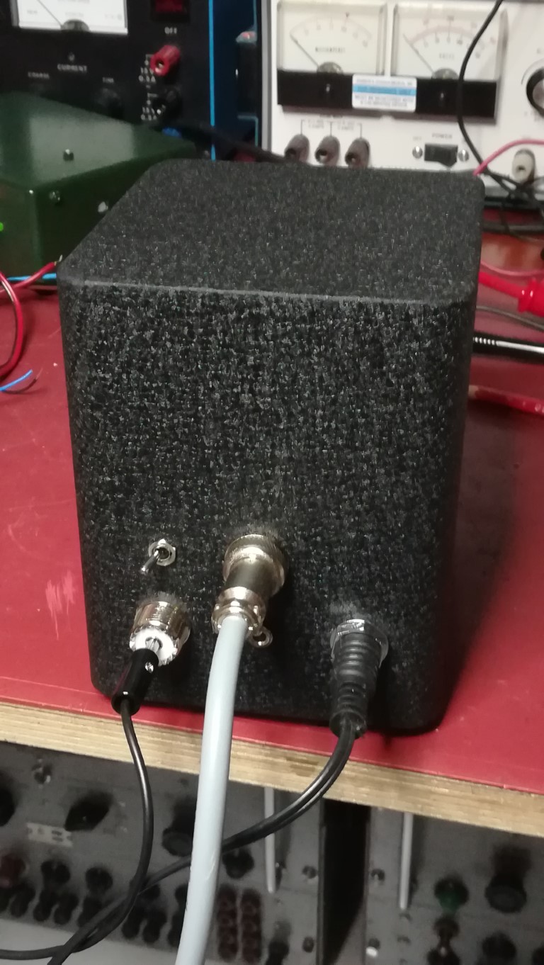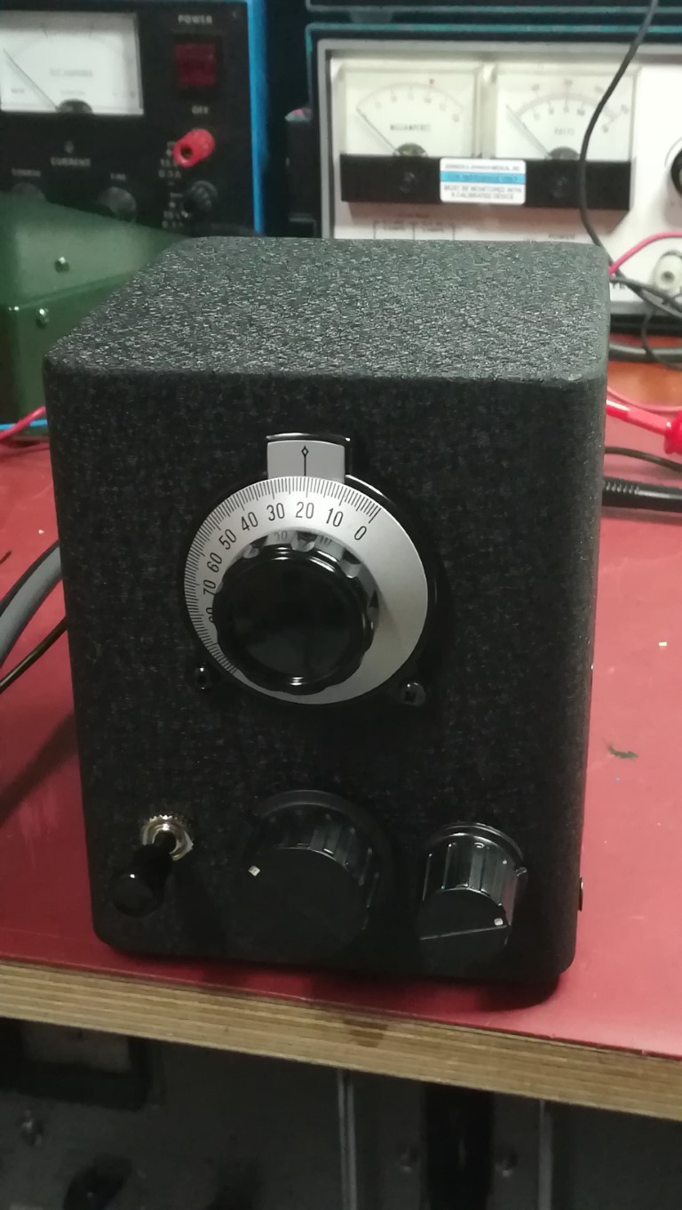 Tämä konstruktio tuntui sen verran hyvältä, että rakensin sen poikkeuksellisesti "valmiiksi". Pitkään pyörittelin kotoa löytyviä koteloita, kunnes löysin takavuosien vahvistinprojektista ylijääneen muuntajakotelon. Se on hiukan turhan kookas miniatyyriputkilla toteutetulle vastaanottimelle, mutta menköön.