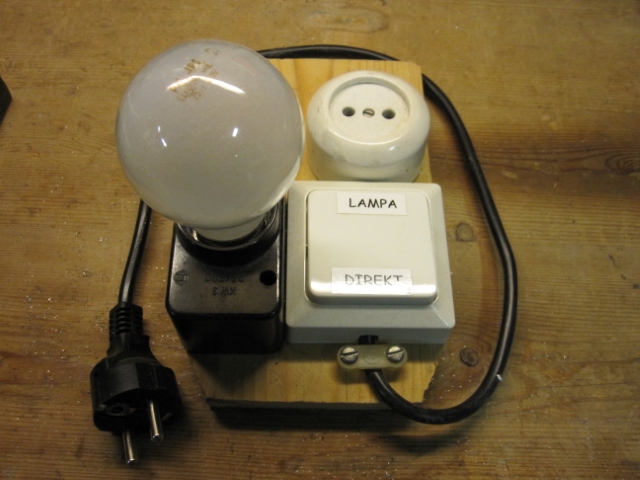 Idea on siis se, että hehkulanka on sarjassa testattavan laitteen kanssa silloin kun testikytkin on AUKI (ei johda) jolloin lamppu toimii sarjavastuksena (muutamia ohmeja). Lampun vastus