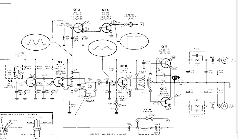 Ohessa Quad FM2 kytkentäkaavio, jossa näkyy stereodekooderin periaate. Kyseinen putkiviritin on toteutukseltaan varsin mielenkiintoinen.