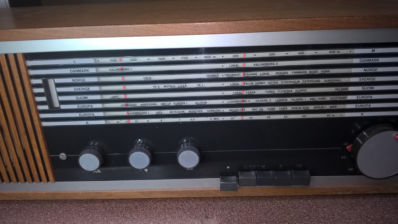 Vasemmanpuoleinen viisari:. Pitkät aallot (L) ja maakohtaiset asemanimet. Lyhyet (K) ja asteikolla taajuudet.